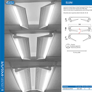 Luminaire encastré dans un faux plafond, réflecteurs réglables, norme HQE